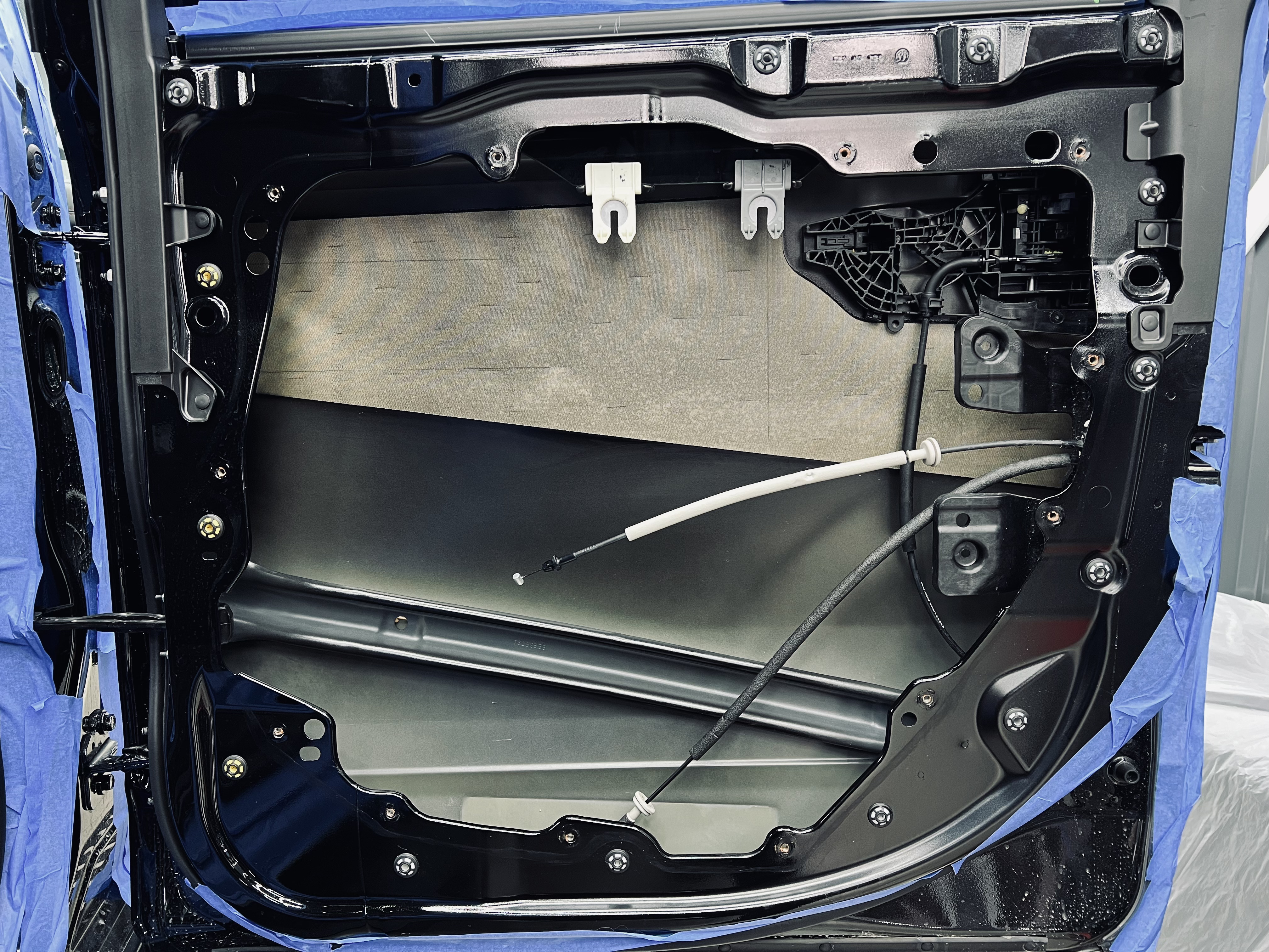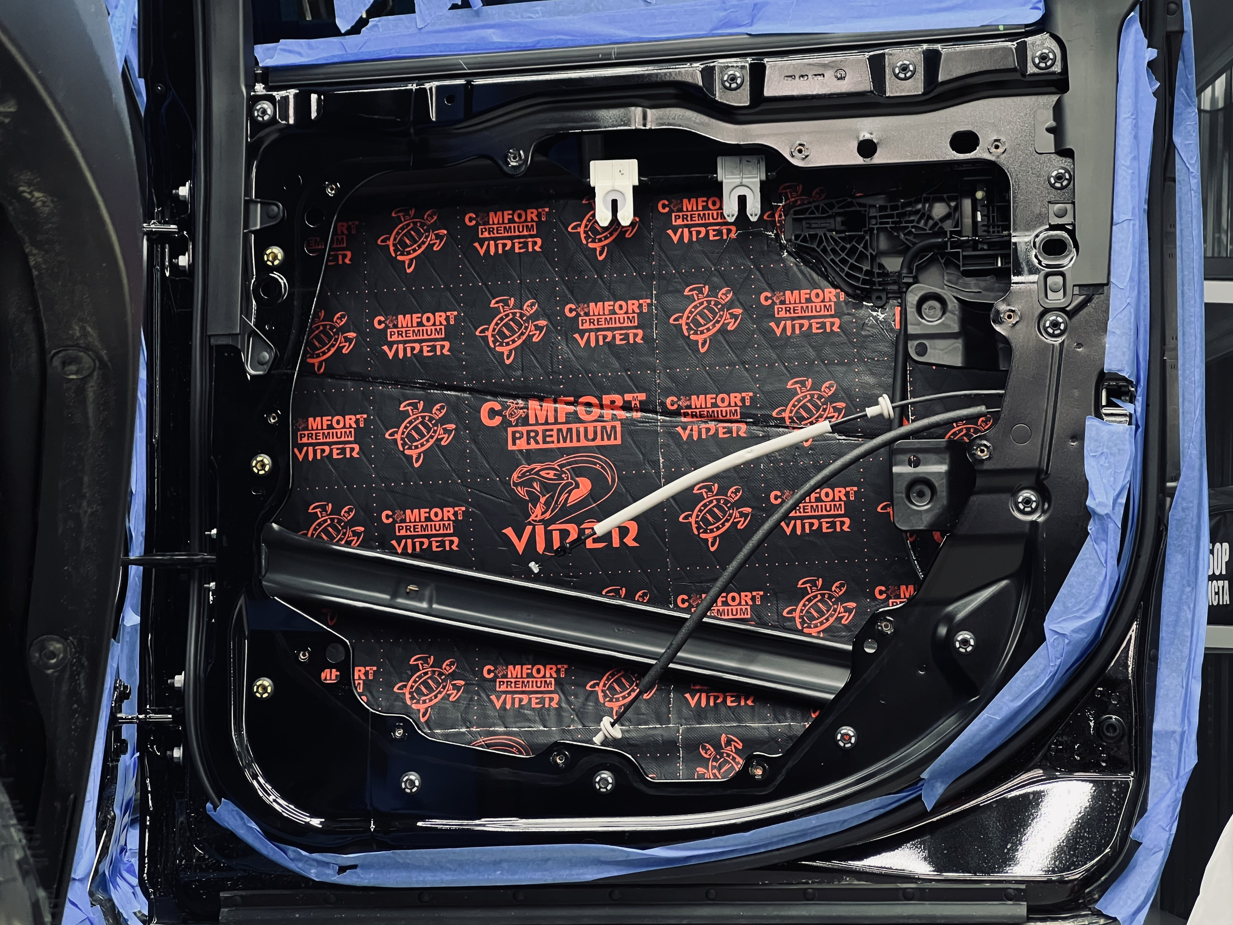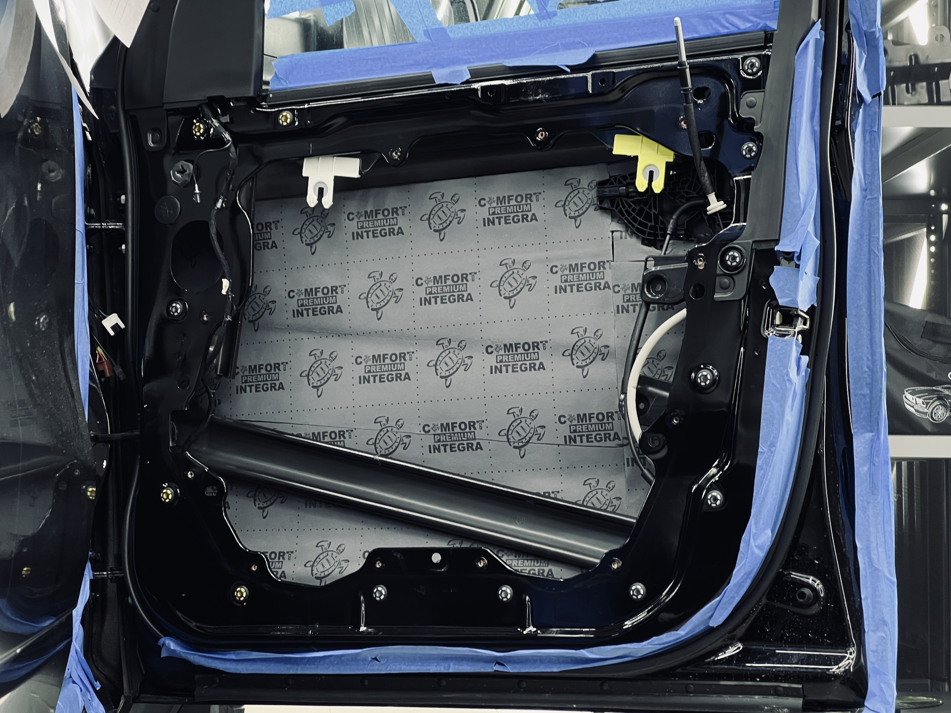 Двери – важный элемент шумоизоляции, через который проникают звуки улицы, ветра и двигателя. Мы обработали их в несколько слоев, чтобы обеспечить тишину и улучшить звучание акустики.