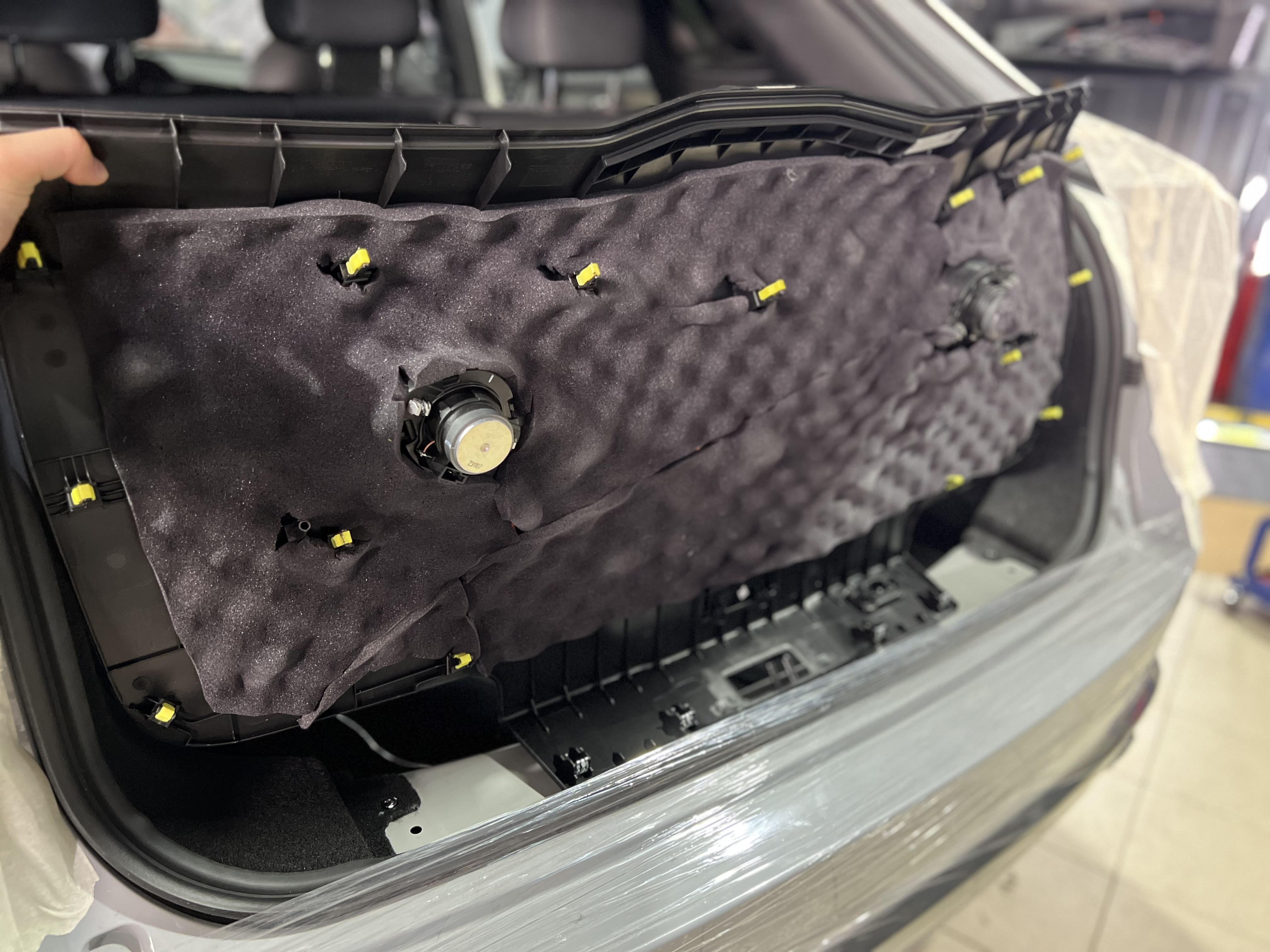 Багажник и днище – основные источники шума от колес, подвески и дорожного покрытия. Мы использовали многослойную изоляцию для устранения вибраций и гула.