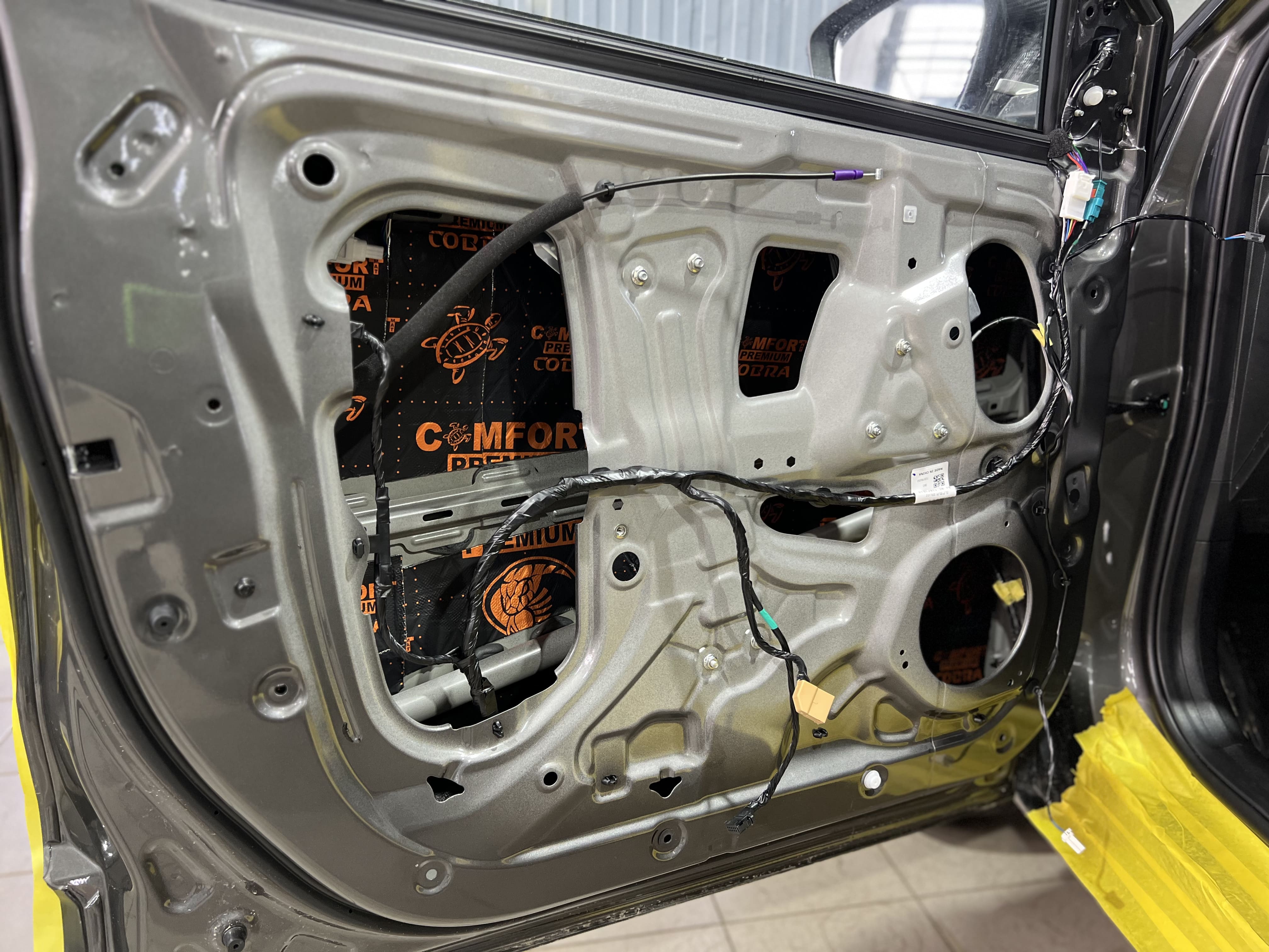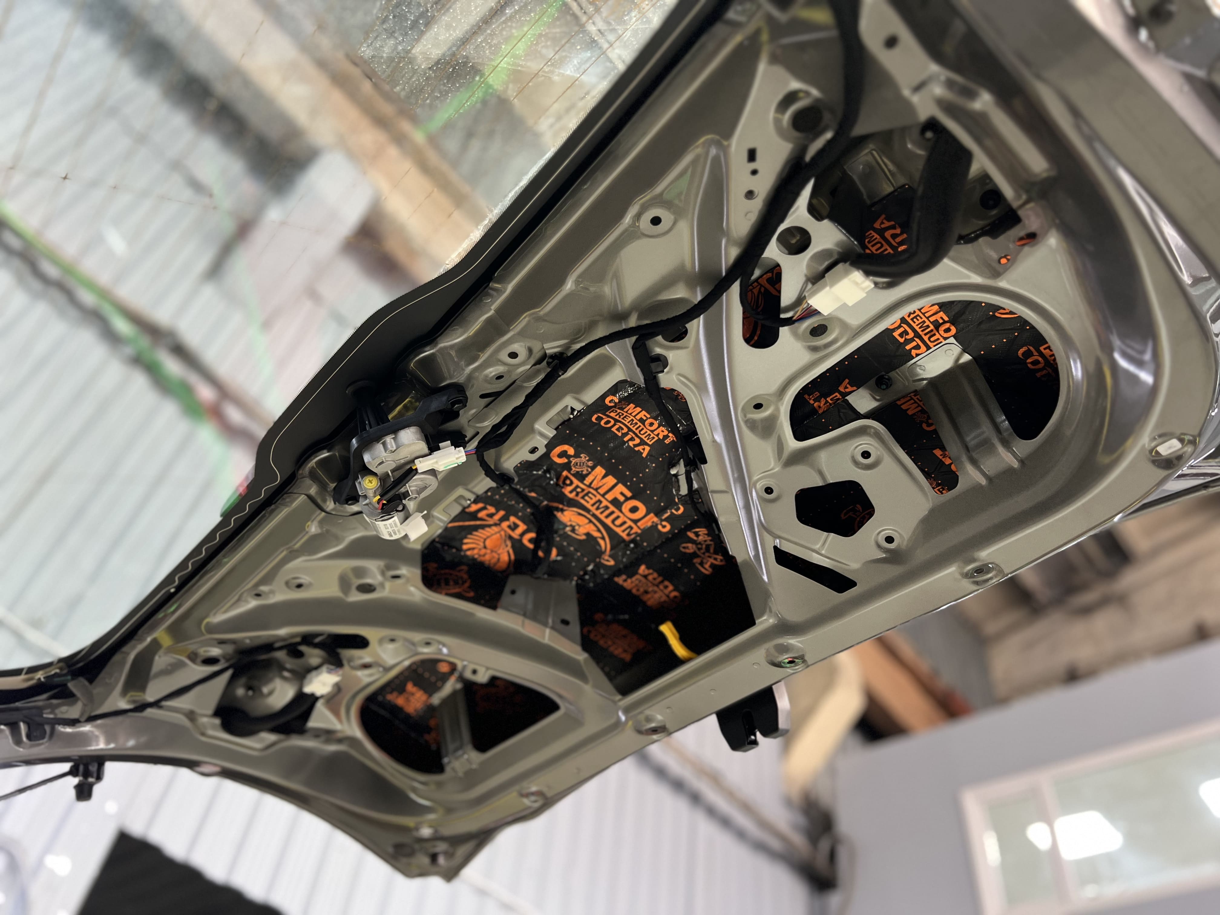 Двери и дверь багажника – важные элементы шумоизоляции, через которые проникают звуки улицы и ветра. Мы обработали их в несколько слоев, чтобы обеспечить тишину и улучшить акустику.