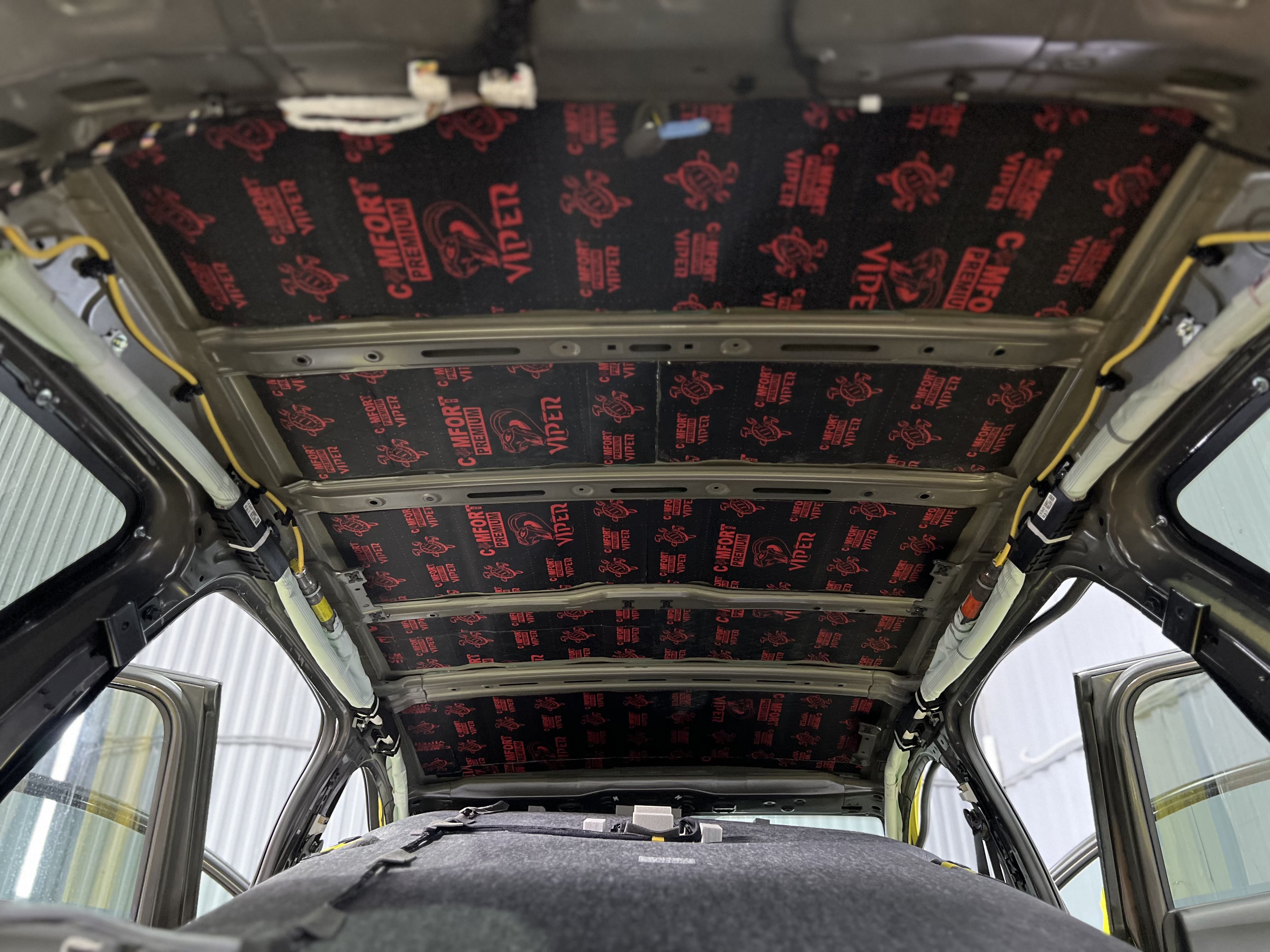 Крыша автомобиля часто пропускает шум ветра и дождя. Мы обработали ее в два слоя, чтобы обеспечить тишину в салоне даже в непогоду.