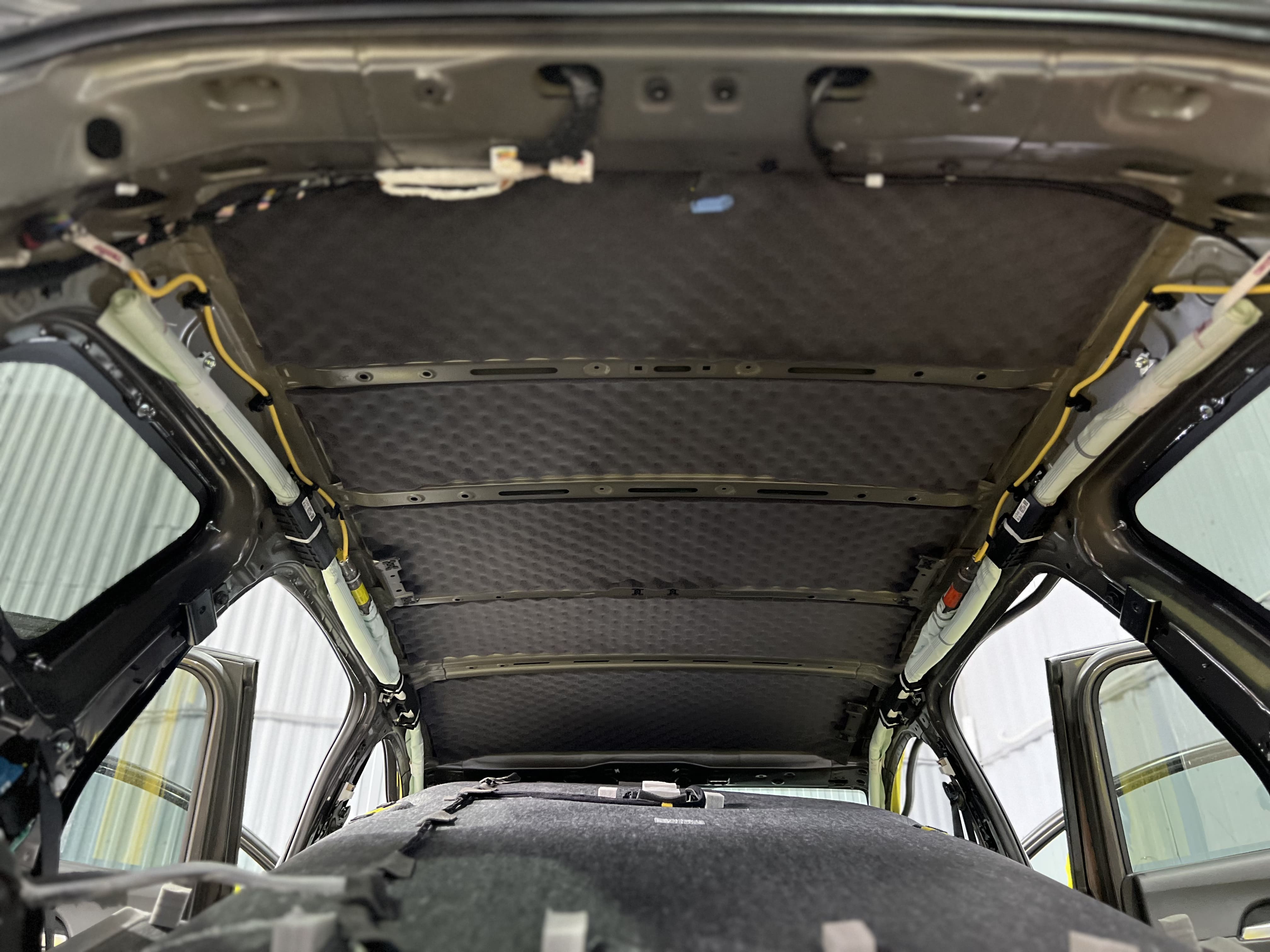 Крыша автомобиля часто пропускает шум ветра и дождя. Мы обработали ее в два слоя, чтобы обеспечить тишину в салоне даже в непогоду.