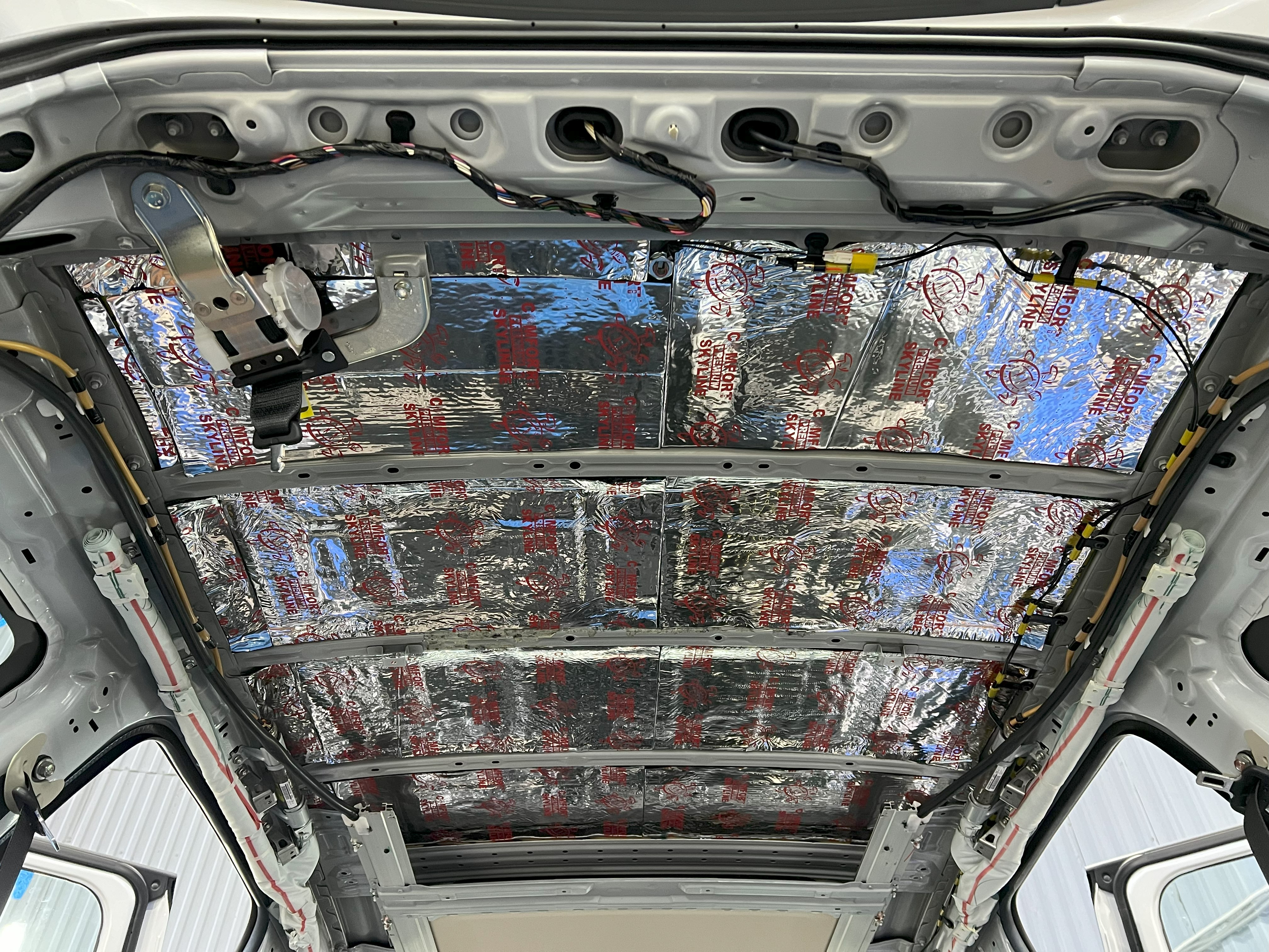 Крыша автомобиля часто пропускает шум ветра и дождя. Мы обработали ее в два слоя, чтобы обеспечить тишину в салоне даже в непогоду.