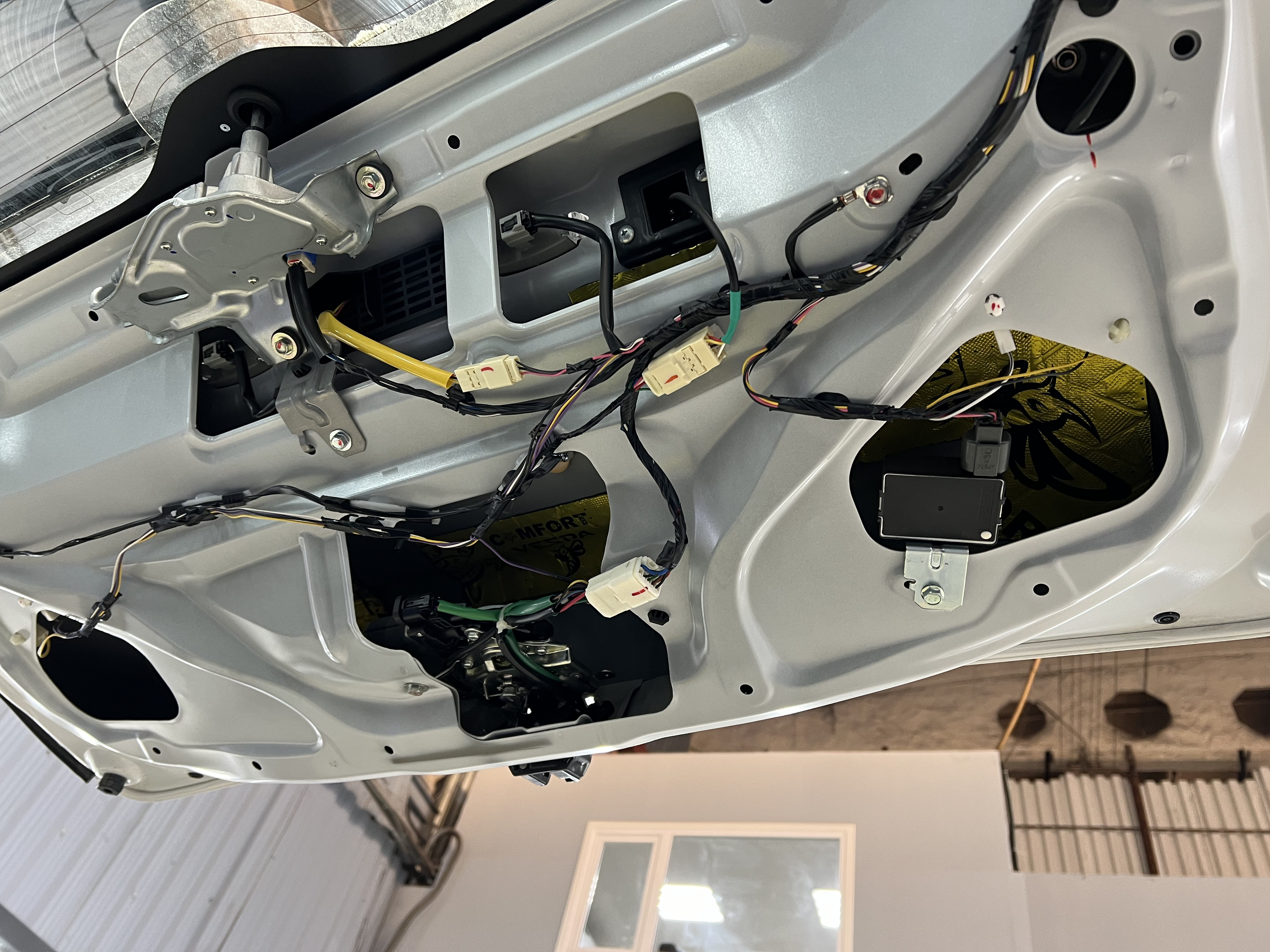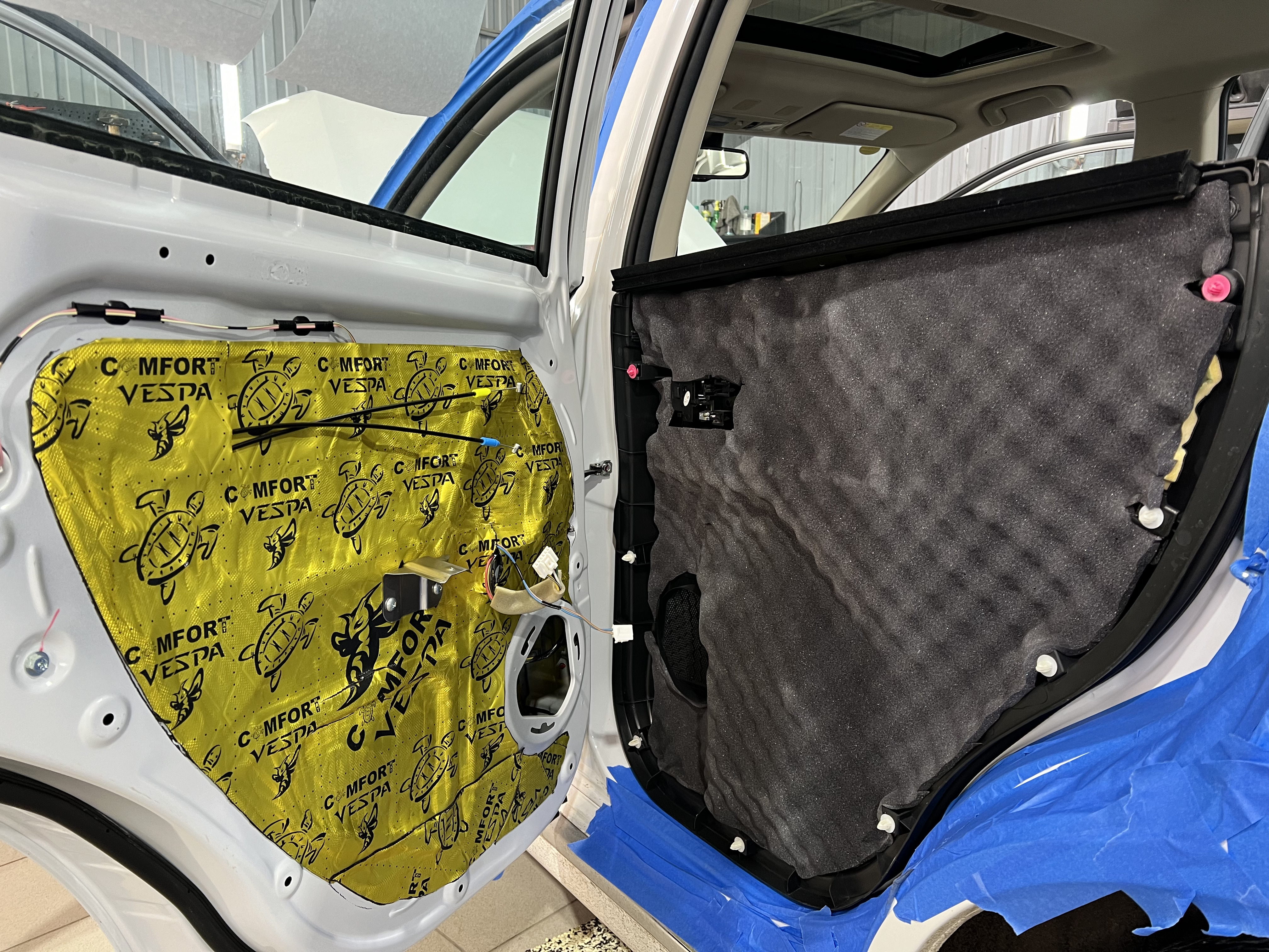 Для дверей и двери багажника использовали Шумоизоляция Comfort Mat Vespa, которая эффективно поглощает шумы и добавляет теплоизоляцию.