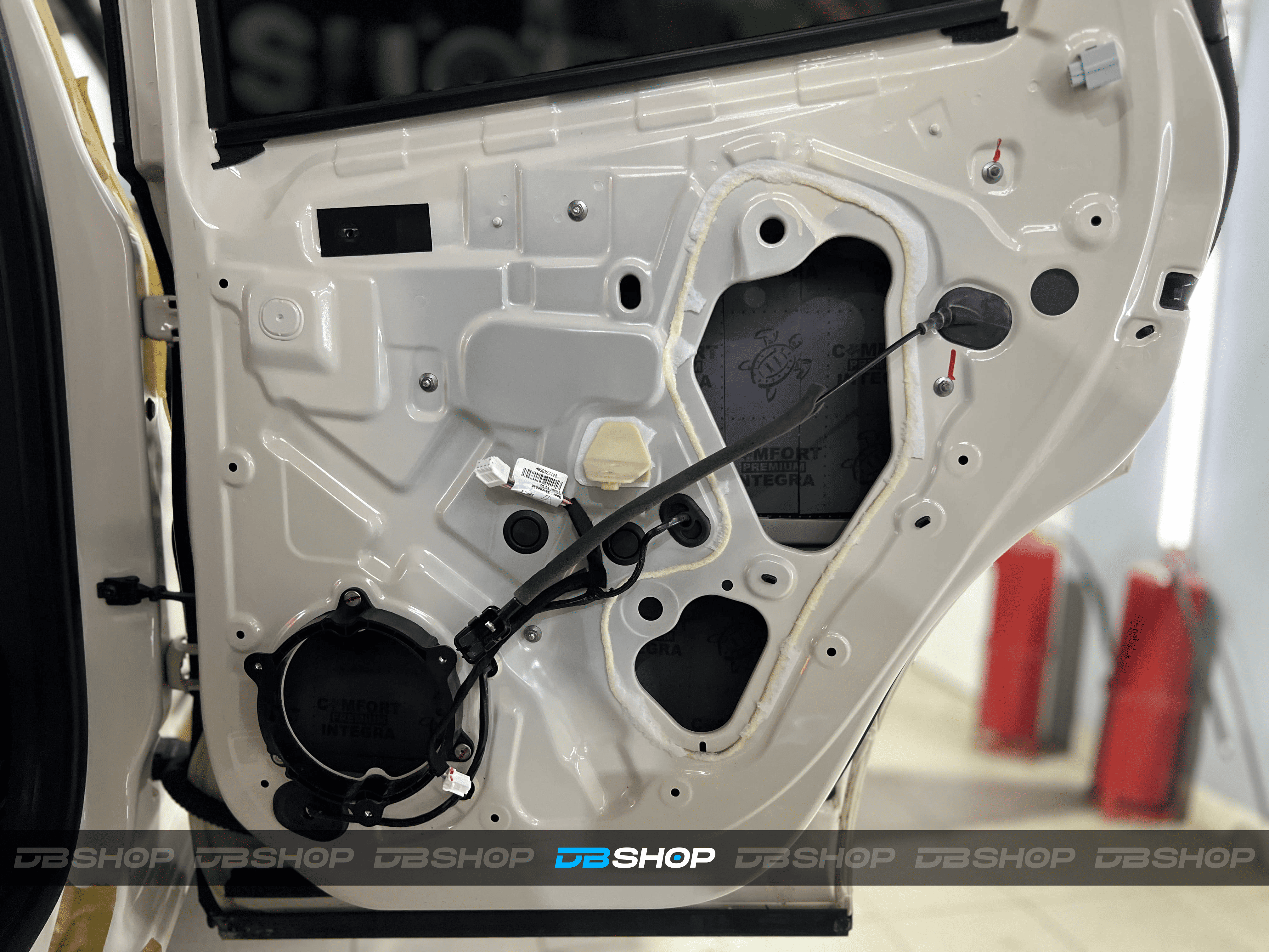 Вторым слоем на двери уложили шумоизоляцию Comfort Mat Integra, поглощающую внешние шумы и добавляющую теплоизоляцию.