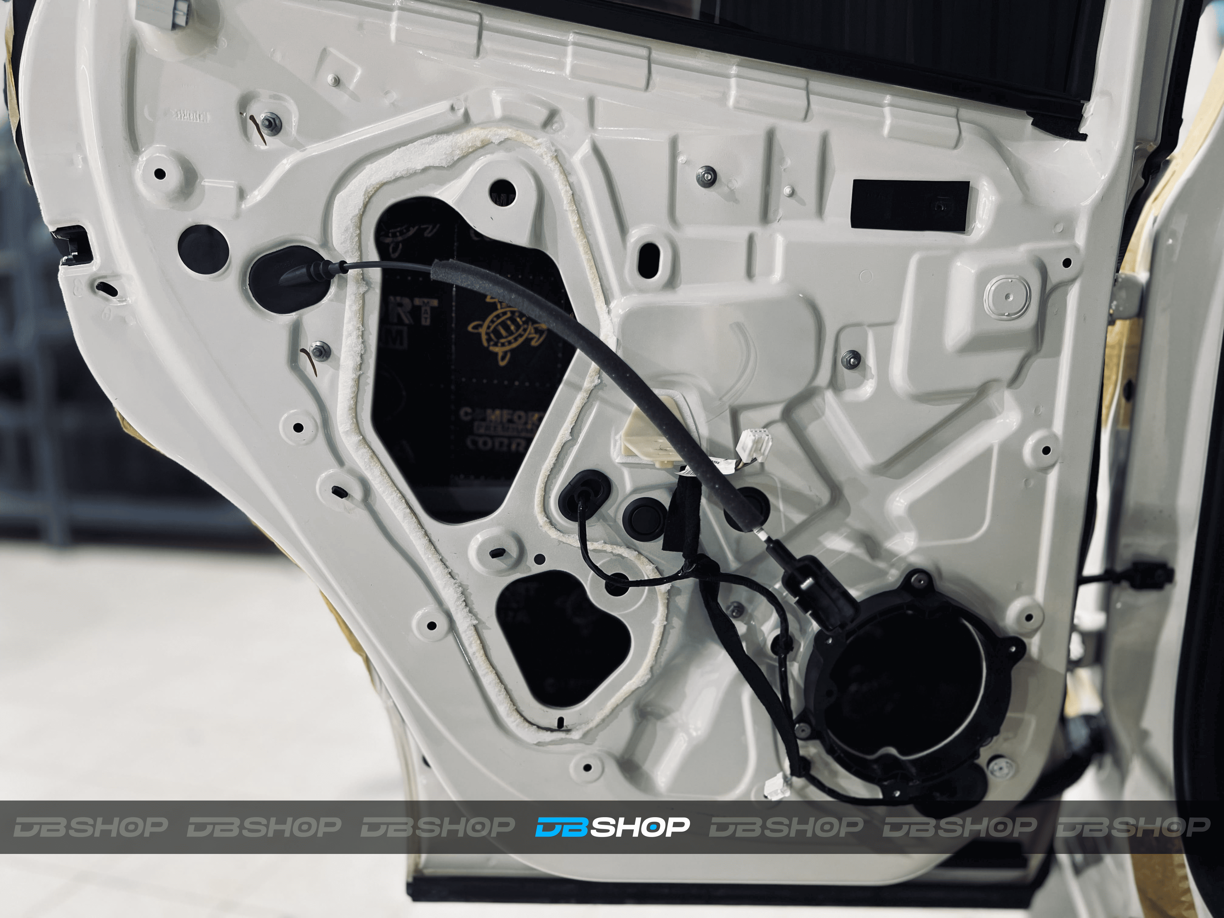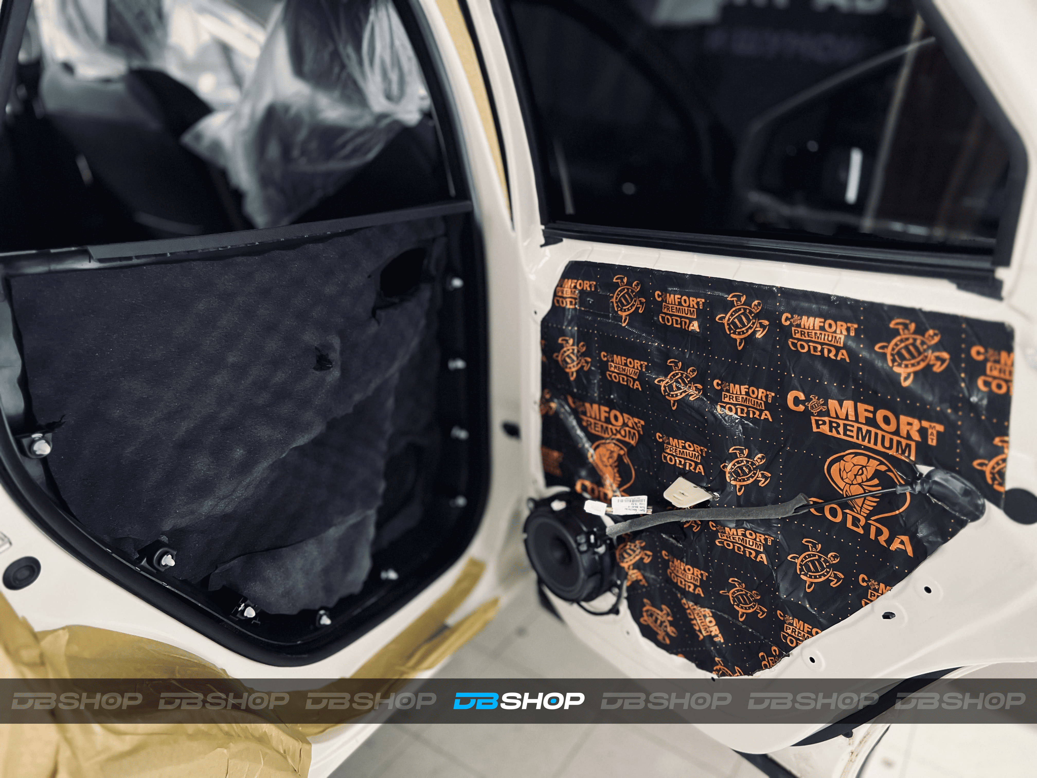 Финальным слоем на каркасе двери и двери багажника нанесли также виброизоляцию Comfort Mat Dark Cobra и добавили шумопоглощающие утолщенные волны Comfort Mat Тишина Volna, идеально вырезанные по размеру.