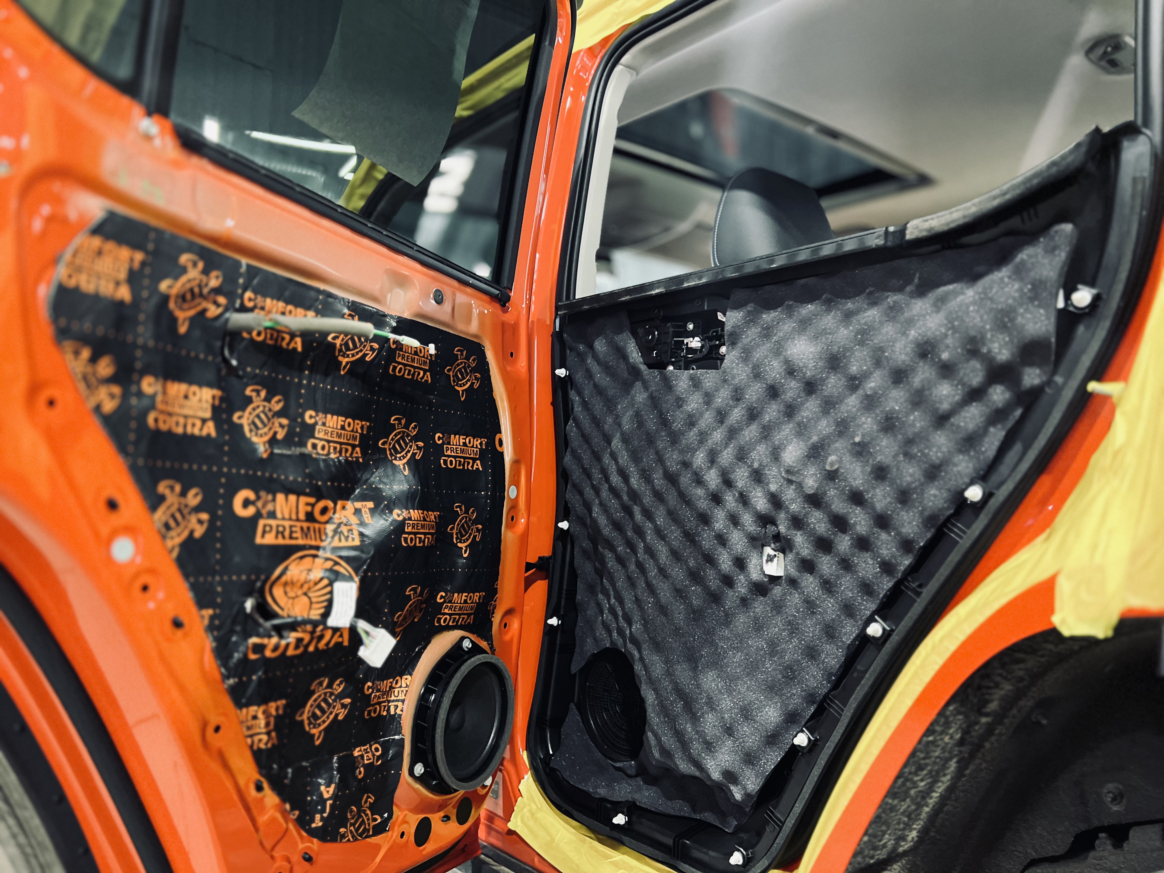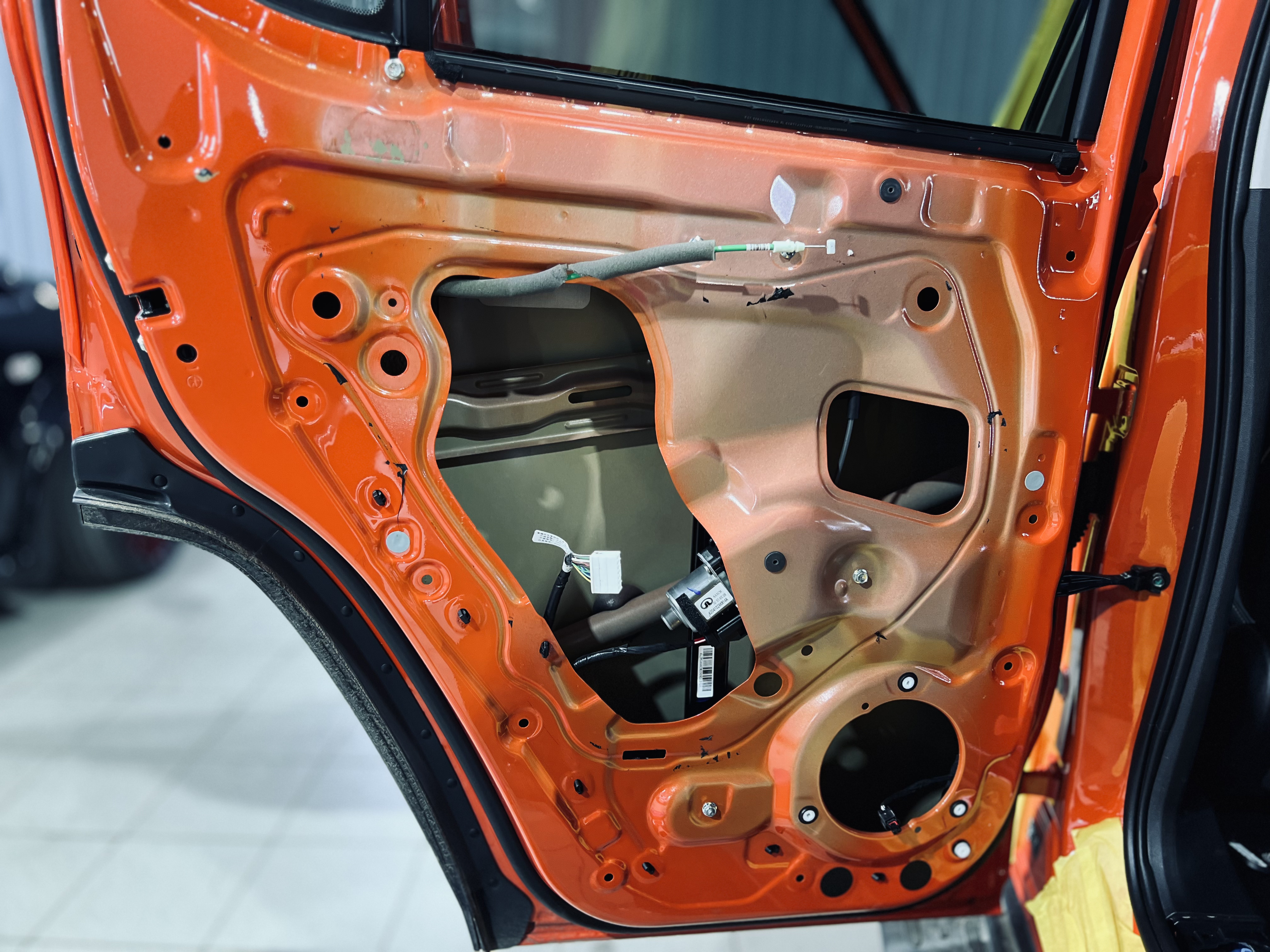 Двери и дверь багажника – важные элементы шумоизоляции, через которые проникают звуки улицы и ветра. Мы обработали их в несколько слоев, чтобы обеспечить тишину и улучшить акустику.