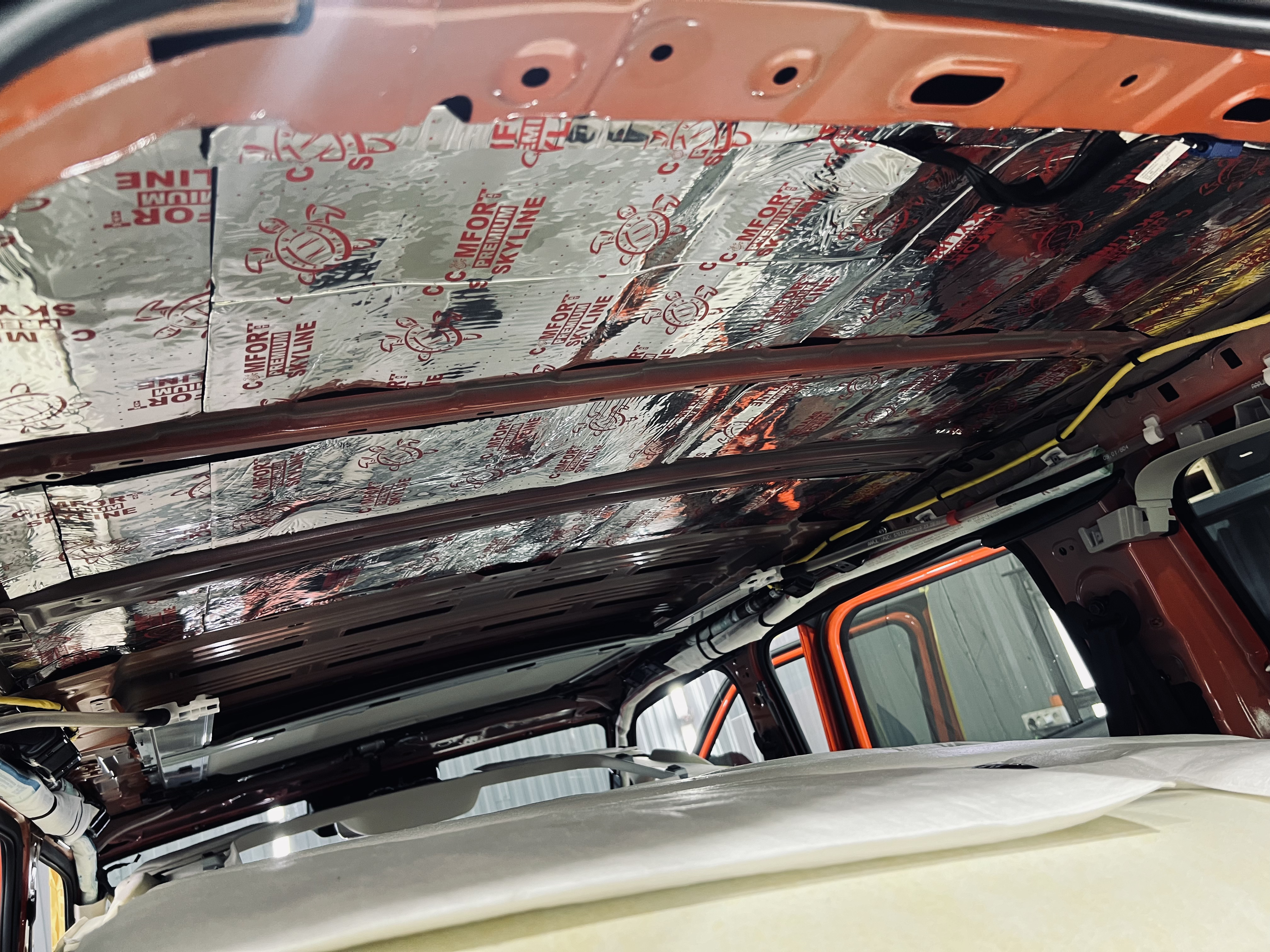 Крыша автомобиля часто пропускает шум ветра и дождя. Мы обработали ее в два слоя, чтобы обеспечить тишину в салоне даже в непогоду.