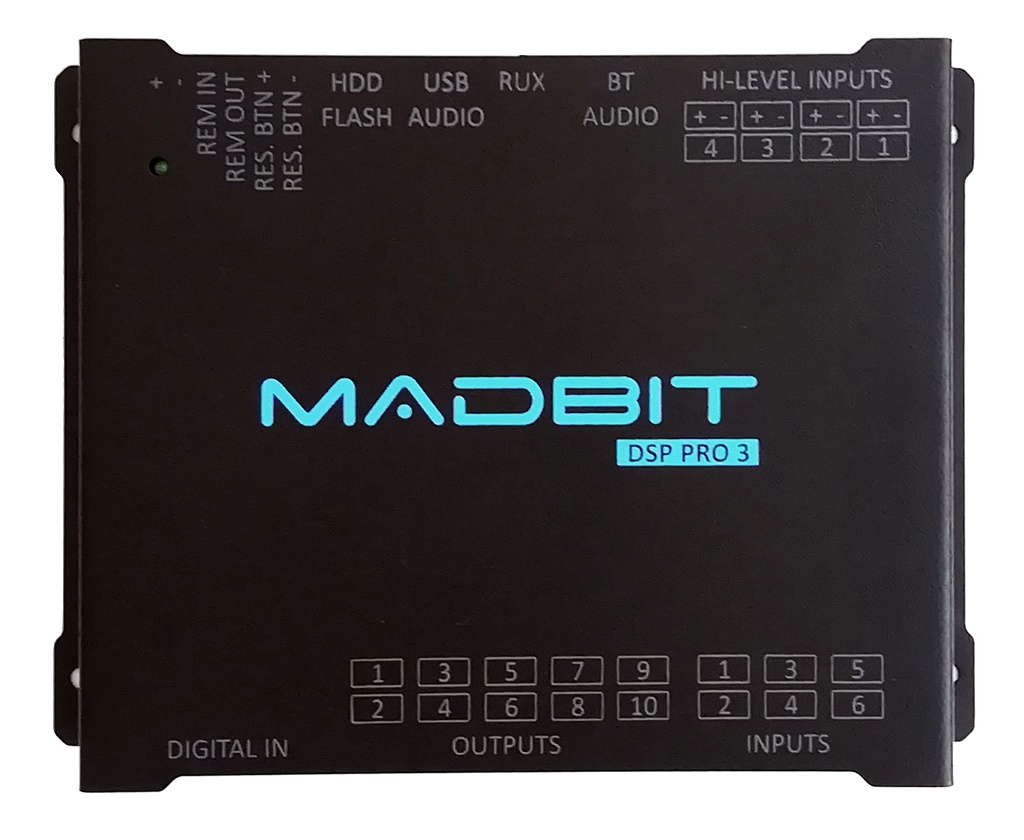 В конструкции процессора МаdBit DSР Рro 3 использован высококачественный чип ЦАП РСМ1796. Устройство поддерживает технологию Вluetooth. Управлять треками можно с помощью кнопок на руле, пульта или приложения. Для быстрого обновления прошивки достаточно воспользоваться флешкой. Можно проигрывать файлы с USB-накопителей. Звук получится сочным и чистым, без шумов и помех. Процессор можно соединять с дополнительными устройствами для создания качественной аудиосистемы. Устройство оснащено большим количеством разнообразных входов и выходов.